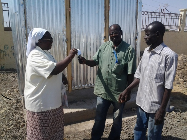 En 2015-2016 d’autres classes du Lycée-Collège Notre Dame de l’Assomption de N’Djamena se joignent aux 4e pour visiter les enfants retournés. Sœurs, enseignants et élèves, tous ont conscience que ce qu’ils apportent est dérisoire par rapport aux besoins réels des Retournés, mais une visite de Sr Martine, alors Supérieure Générale des religieuses de l’Assomption, leur fait entrevoir la possibilité de faire bien davantage. Sr Laetitia avec les élèves et l’équipe éducative élabore un projet à partir des demandes exprimées par des familles du camp et demande une aide financière au Bureau Général de la Solidarité, qui est à Paris. Celui-ci le propose au réseau des Etablissements scolaires « Assomption France ». Un partenariat à trois se met ainsi en place. Les élèves français organisent au cours de l’année 2016-2017 des activités qui leur permettent de collecter de l’argent et restent en contact avec ceux du Tchad. Le résultat est surprenant. Dans une vidéo du 17 novembre 2017 montrant la fête organisée pour la fin du projet, on y découvre les résultats obtenus : construction de 21 nouvelles latrines, remise de 10 enveloppes de 15.000 FCFA à des femmes qui veulent démarrer une modeste activité lucrative, achat de 10 machines à coudre, du tissu, de la laine et même des machines pour fabriquer des « macaronis ». Dans le domaine de l’instruction des enfants, du matériel didactique et d’équipement est remis à l’école primaire qui a aussi bénéficié de la réhabilitation des 4 salles de classe et du bureau. Au-delà de l’aspect matériel, il y a une belle expérience vécue par les uns et les autres, faite de rencontres fraternelles, de brassage culturel respectueux des différences, d’écoute et de créativité, de solidarité et entraide, d’efforts partagés.