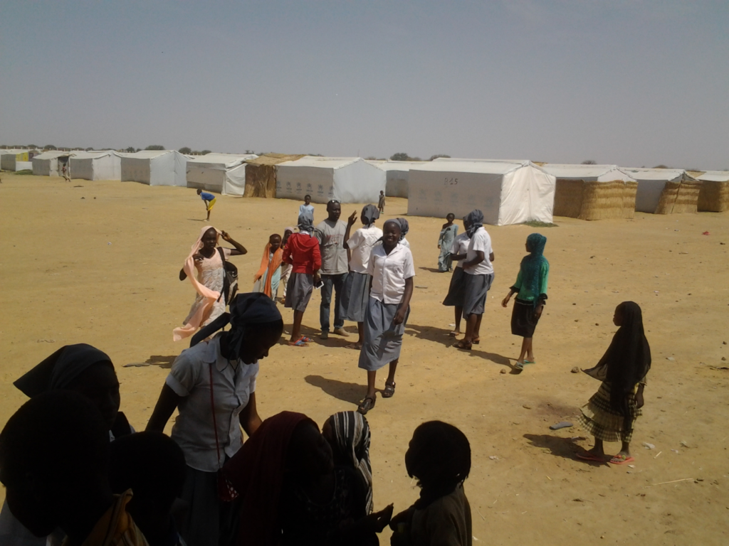 Les Religieuses de l’Assomption ont un lycée-collège de filles dans la périphérie de N’Djamena. Au cours de l’année scolaire 2014-2015, un groupe de 4e motive la classe tout entière ainsi que leurs enseignants pour visiter les enfants et les adolescents du camp de Gaoui. Elles n’y vont pas les mains vides. Avec une partie de leur argent de poche et de l’argent donné par leurs parents, les élèves achètent des fournitures scolaires et du matériel pour des activités ludiques ainsi que des friandises. Dans le camp elles proposent aux enfants des jeux et du soutien scolaire. Elles veulent établir des relations d’amitié, partager les joies et les souffrances de ces enfants qui ont connu très tôt les effets dévastateurs de la violence et de la misère. Bien vite les visites leur font découvrir la situation réelle dans laquelle vivent les Retournés de Gaoui. L’aide alimentaire n’est pas donnée régulièrement, la presque totalité des 700 abris est dans un état de délabrement avancé à cause des pluies, 200 sont totalement détruits. Il n’y a pas de Centre de santé, le plus proche est à 3 km et les frais pour les soins et l’achat des médicaments prescrits dépassent les possibilités financières de la plupart d’entre eux.