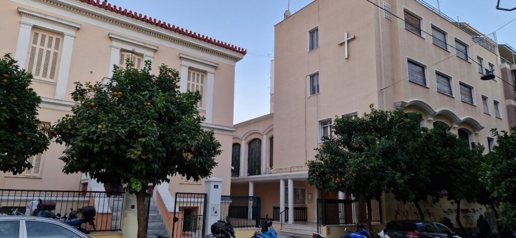 La paroisse Sainte Thérèse de l’Enfant Jésus d’Athènes en Grèce est desservie par les Assomptionnistes depuis 1934. Pendant des années, les pères ont assuré une messe dominicale dans une petite chapelle. Ce n’est qu’en 1975 que nous sommes devenus officiellement une paroisse. Du point de vue géographique, ladite paroisse est située au Nord de la Capital d’Athènes, non loin de l’Acropole, au quartier Kupsely, rue Eptanissou 32.