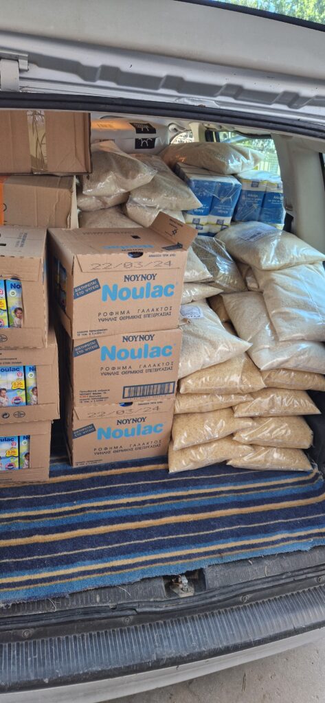 Il est aussi à souligner que nos activités caritatives ne se limitent pas seulement au sein de notre paroisse, mais s’étendent et se développent également à la Caritas diocésaine Athènes, où nous sommes présents à toutes les activités et les besoins urgents, dont le soutien vestimentaire aux réfugiés et aux prisonniers, l’aide financière urgente pour les soins médicaux, le transport des denrées alimentaires d’une banque de nourritures au bureau de Caritas Athènes, etc. Dans le secteur vestimentaire, un partenariat est aussi en cours avec un organisme orthodoxe.